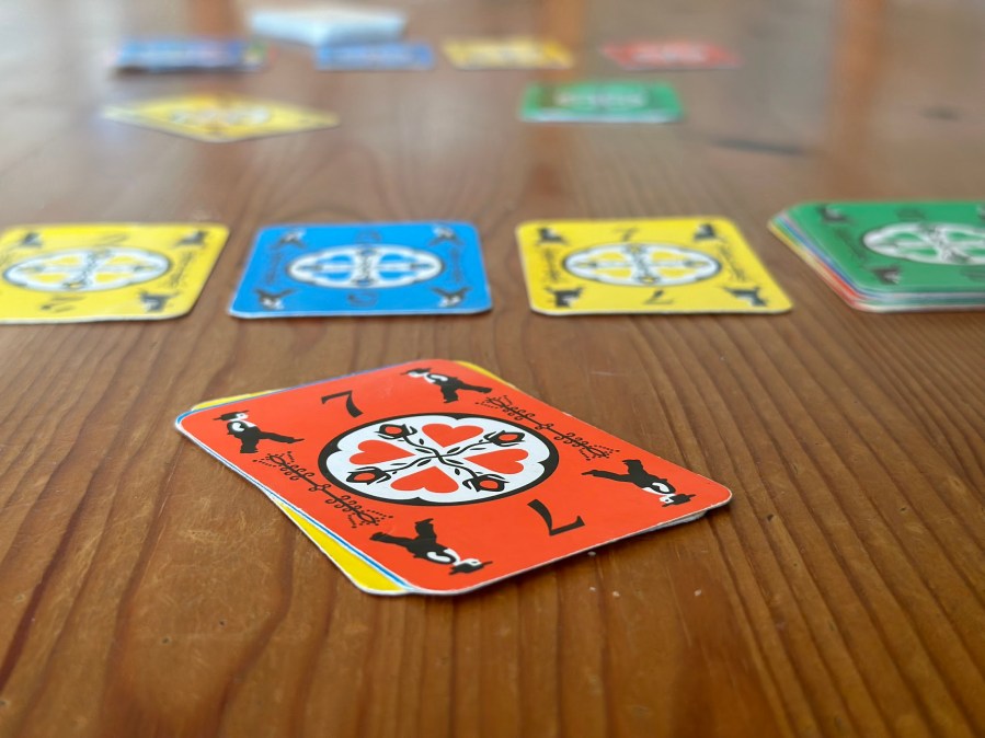 On your turn, you’ll do two things. Discard first! Place one of your cards on either discard pile. (If you’ve got multiple cards of the same number, you’re allowed to get rid of the entire set.) Secondly, draw a card from the other discard pile – or from the draw pile.